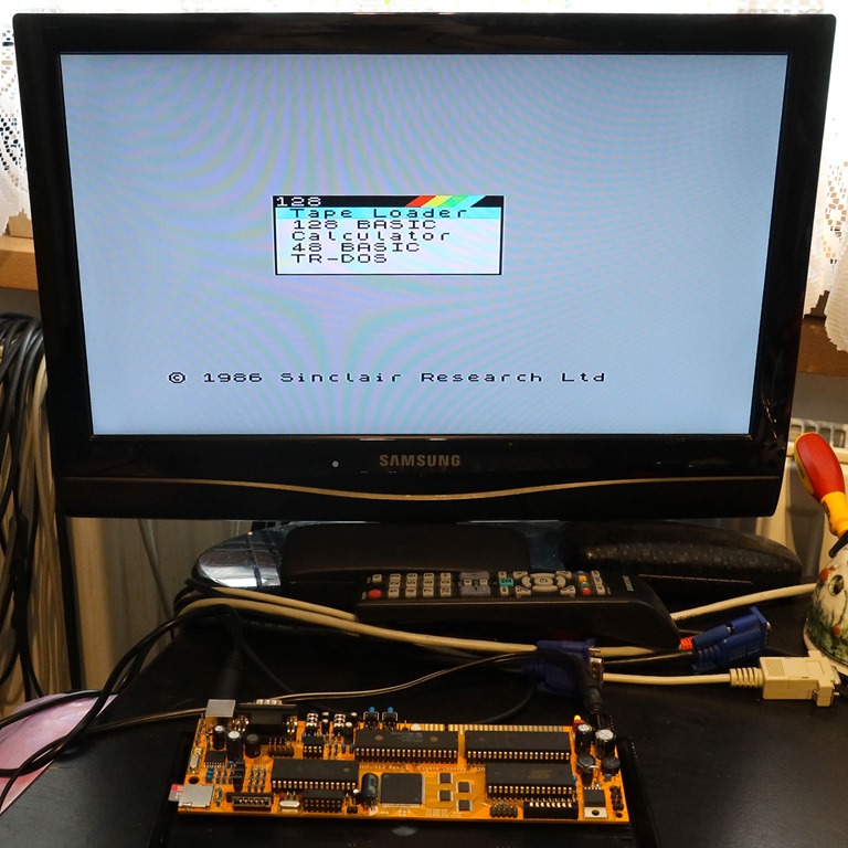 Co vlastně je Sizif-512? Jedná se o klon Speccy, který snadno namontujete do původní skříňky ZX Spectrum 48k. Z pohledu běžného uživatele máte k dispozici 512 kB RAM a časování Pentagonu, ZX Spectrum 48k nebo 128k. Kromě toho můžete přetaktovat CPU na 7 nebo 14 MHz. Dostatečně velká ROM (512 kB) umožňuje snadné přepínání mezi Speccy 48k, OpenSE, 128k a +3e divMMC ROM. Kromě toho si můžete dvěma jumpery navolit další ROM, jako je třeba diagnostická ROM, ZX80/ZX81 ROM a nebo prohodit ROM za nějakou úplně jinou (ROM je v DIL patici, takže není problém ji kdykoli vyměnit nebo přeprogramovat). Jako úložiště, a pro snadné spouštění programů, využijete integrované divMMC s microSD kartou. Zvuk zajišťuje klasické AY-3-8910 s možností softwarového přepínání na ACB nebo ABC stereo či mono. Kromě fyzického AY je v CPLD emulovaný i Covox (Pentagon nebo 4-kanálový SoundDrive). Syntetizovaná ULA má implementované i funkce ULAplus. Video je ve formě RGB i kompozitního signálu, společně s audiem, na 9-pinovém miniDIN konektoru. Joystick připojíte na integrovaný Kempston port. Přepínání výše uvedených featurek zajišťuje MAGIC button. Tlačítko samostatně funguje jako NMI a v kombinaci s klávesami na klávesnici pak zajišťuje přepínání funkcí za chodu, takže můžete koukat třeba, jak vypadá demo na jednotlivých konfiguracích (strojích). Vlevo je Pentagon, uprostřed ZX Spectrum 48k a vpravo ZX Spectrum 128k.