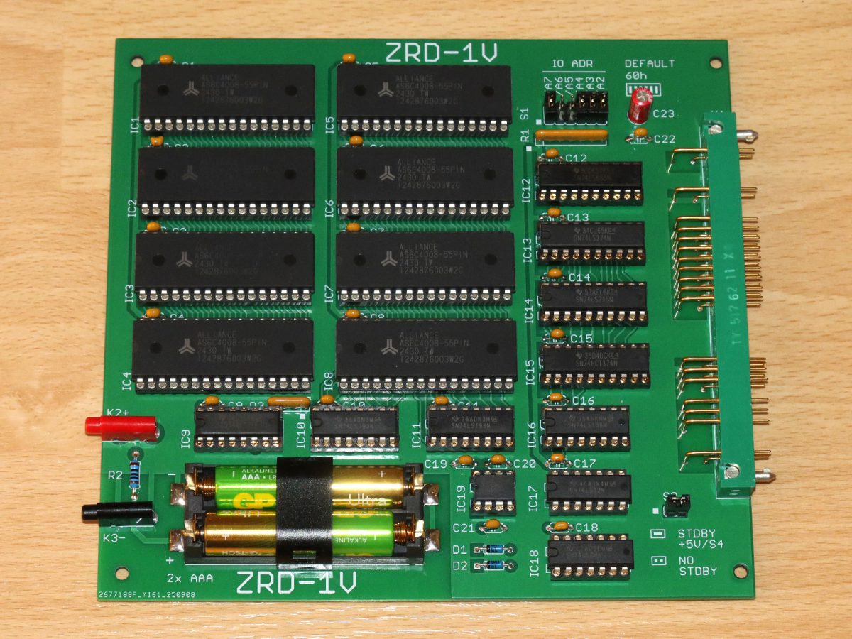 Libor nezadržitelně postupuje ve svém trendu výroby svých vlastních přizpůsobených SAPI-1 desek. Tentokrát přišla na řadu deska RAM disku ZRMD-1, který Libor pozměnil jen lehce. Úplně odstranil nepoužívaný RTC obvod EPSON RTC 72421, akumulátor nahradil 2 běžnými bateriemi AAA, hlídání napětí má na starosti MAX808 a tranzistory pro CS pamětí SRAM nahradil obvodem 74AC138. Desku nazval ZRD-1V.