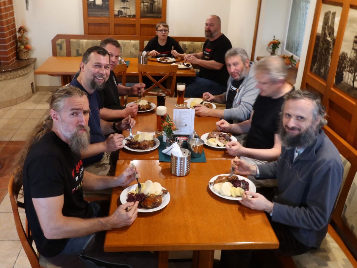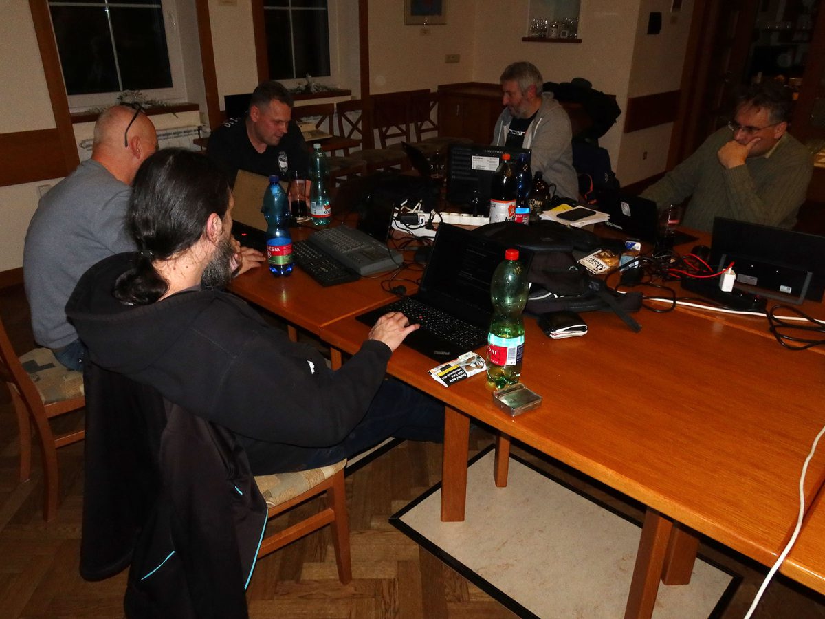 Petra EC1045 jsem naložil lehce před jednou hodinou a okolo 15 už jsme byli na místě, kde už bylo celkem dost lidí a stoly se rychle plnily. Dokonce jsme se museli později i trochu zmáčknout. Naštěstí byli všichni tolerantní a vešli jsme se v pohodě. Možná ale příště budeme muset Pavla poprosit ještě o nějaké stoly, aby to bylo pohodovější. Akce se nám holt rozrůstá.