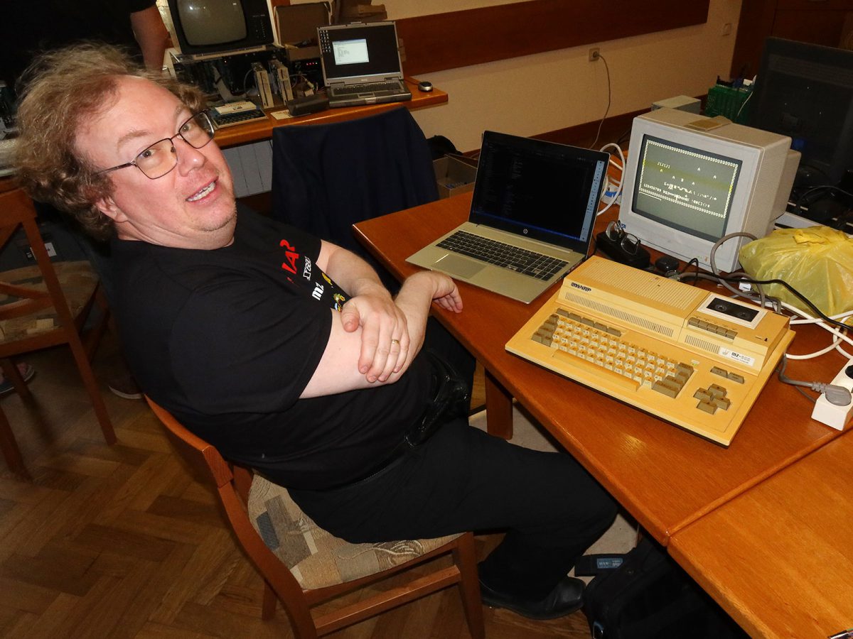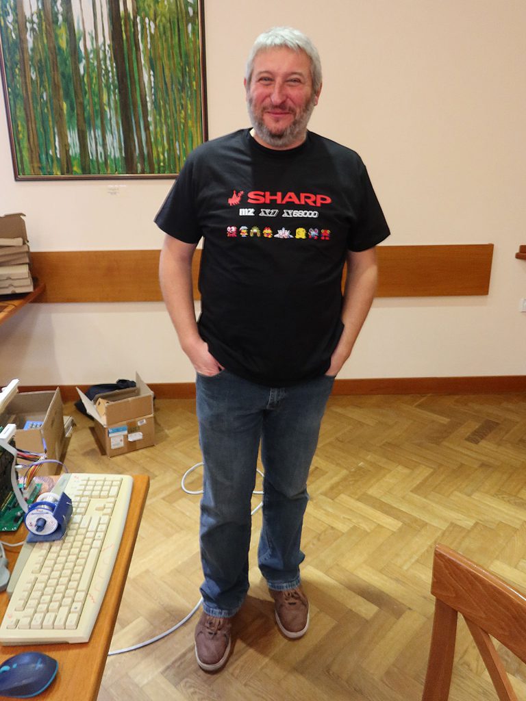 Na testování jsme potřebovali MZ-700 a MZ-1500, které jsme s sebou ovšem neměli. Naštěstí pan domácí, Pavel, má všechno a oba počítače nám zapůjčil. Bohužel ležely nějakou dobu ve skladu a tak se na MZ-700 objevila klasická závada filtračního kondenzátoru ve zdroji. A kdopak u toho byl? No jasně, zase Bohouš. Naštěstí už má spoustu zkušeností, takže s kouřícím a smrdícím zdrojem bleskurychle vyběhl mimo obytné části. I tak chvíli trvalo, než se to vyvětralo. Pavel to bral statečně. Jako správný SHARPista, mám náhradních kondenzátorů doma celý pytlík, tak jsem vzal počítač s sebou, kondík vyměnil a zdroj je zase jako nový.