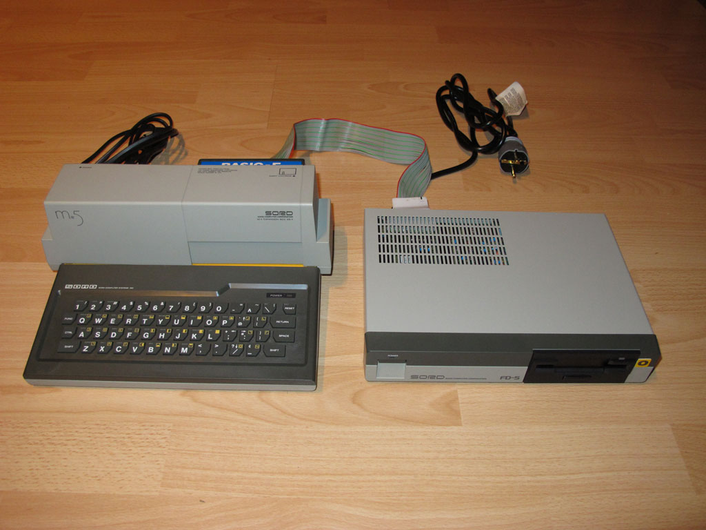 Už v dávných dobách, kdy jsem byl zarytý “sharpista” jsem pokukoval po kolezích s podivným malinkým počítačem, který v BASICu podporoval hardwarové sprity, což úžasně usnadňovalo programování různých hříček. SORD M5 byl, jako Sharp, bez BASICu. BASIC se nacházel na cartridge a byl hned ve 3 provedeních: základní celočíselný BASIC-I, grafický a zvukový celočíselný BASIC-G a konečně vědecký BASIC-F pro výpočty s omezenou sadou grafických a zvukových příkazů. BASIC-F měl navíc jako jediný i podporu pro připojení 3” disketové jednotky, která se k nám však nedovážela. Proto se objevili amatérské počiny jako byl řadič disketových jednotek pro připojení standardních disket a s mírnou HW úpravou SORDa šlo spustit i CP/M.